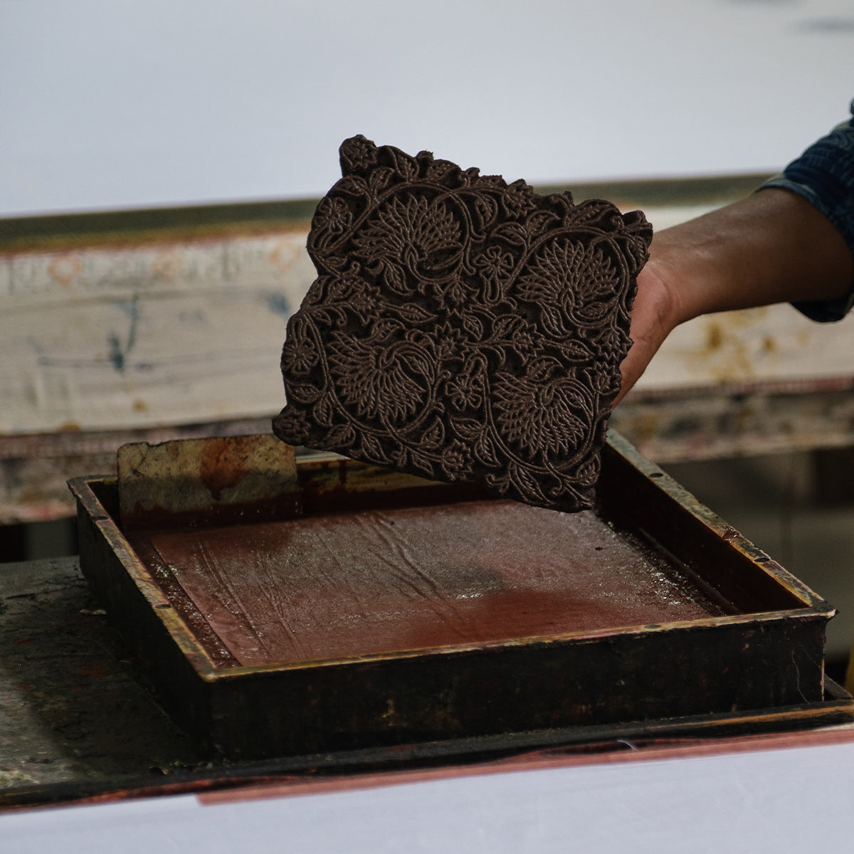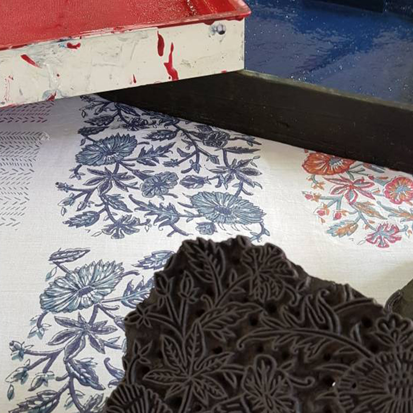 Our products are handmade by artisans — not factory manufactured. Skilled craftspeople hand-carve wooden blocks from hand-drawn sketches and then block-print our products by hand.