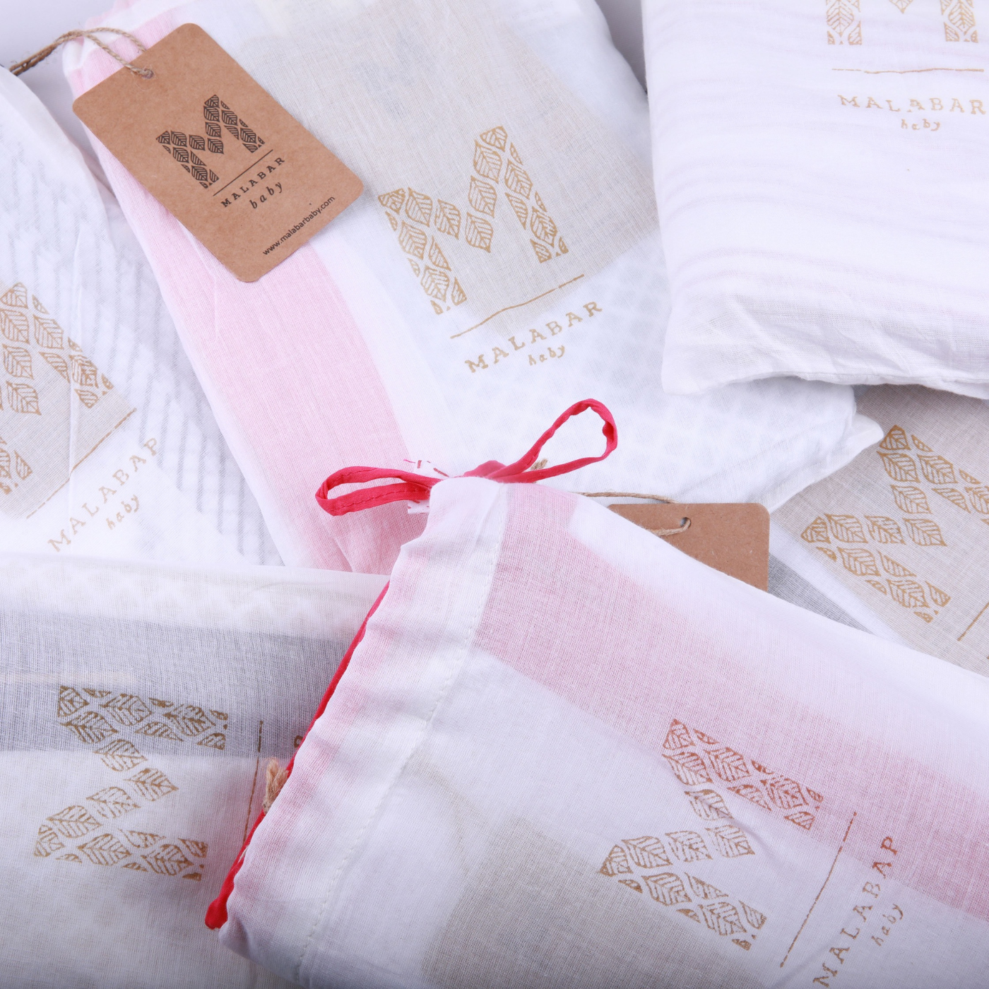 At Malabar Baby, we strive to be as environmentally-responsible as possible especially when it comes to our packaging. Our products come delivered in tasteful reusable muslin bags and non-treated, recyclable cardboard boxes.